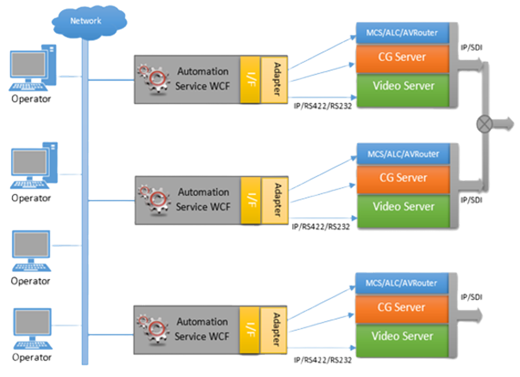 Running on Automation server to control frame accuracy playout server. Control mix between different video or audio servers in the same channel broadcast via VDCP, Native API protocols played out from the server for a full playlist before stopping even in the case the whole system crashed.