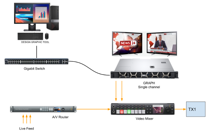 Graphic playout onair graphic engine software. CG engine use HML5 for graphic format and animation.