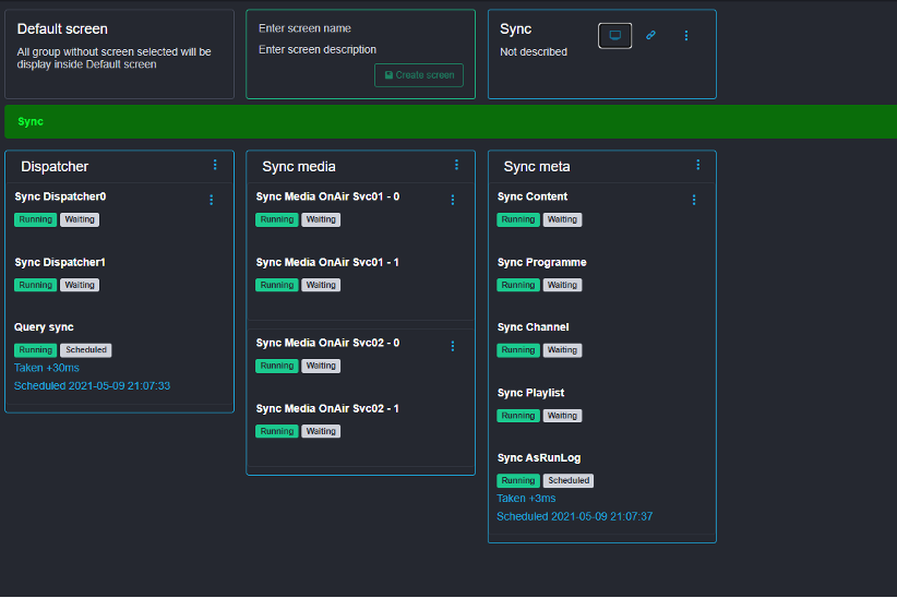 Synchronizes media, meta data and playlists between the Automation system and a Media Assets Management system. Sync plays an important role in file based workflow in broadcast stations, from production/post production to playout/distribution.