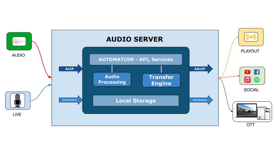 The Audio server is a radio server working with media, supports wide range of codecs and formats.